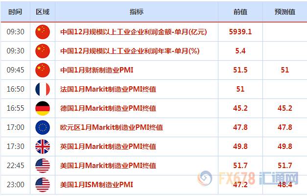 欧洲时段,投资者需要留意欧美国家1月制造业PMI数据终值的表现,目前市场预期比较中性,估计对行情影响较小。