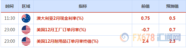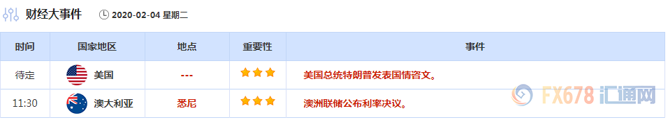 周二(2月4日)关键词:澳洲联储利率决议、特朗普国情咨文、美国工业产出;
