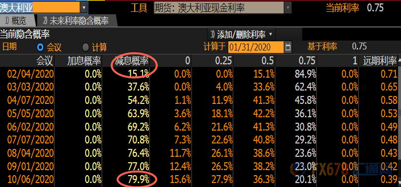 利率期货显示,澳洲联储2月降息的概率仅为15%左右;不过,利率期货显示澳洲联储在10月份降息的概率接近80%;考虑到近期市场普遍下调全球经济增速,预计澳洲联储的措辞可能偏向鸽派,这可能在利率决议前令澳元和纽元偏向弱势;但由于近期澳元跌幅较大,投资者需要提防意外情况和“靴子落地”行情。