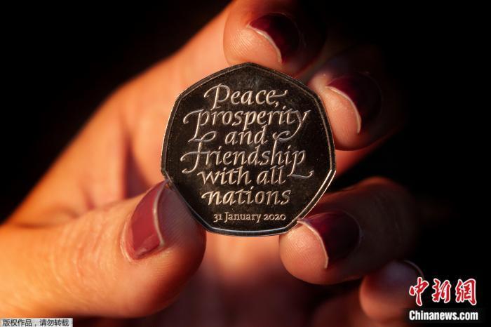 “共享和平、繁荣和友谊”是刻在英国脱欧纪念币上的字样。