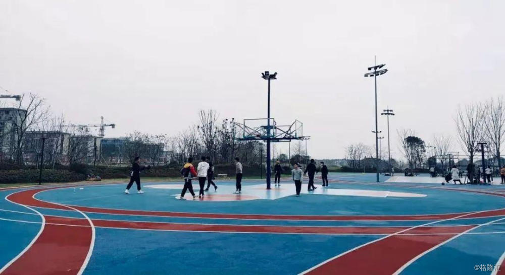 1月27日下午,空旷的社区公共健身中心篮球场地的运动场景 来源:受访者供图