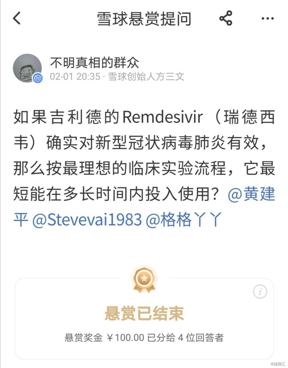 雪球用户@不明真相的群众 在雪球就此在雪球上发布了悬赏话题。