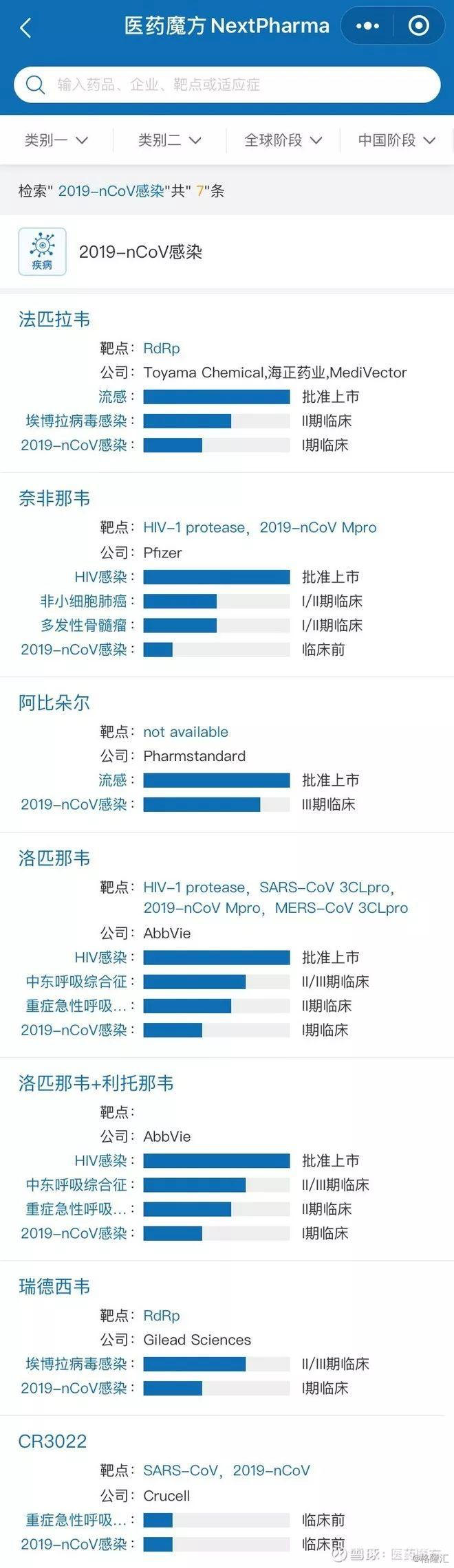 除了吉利德的瑞德西韦之外,已有多款药物在研