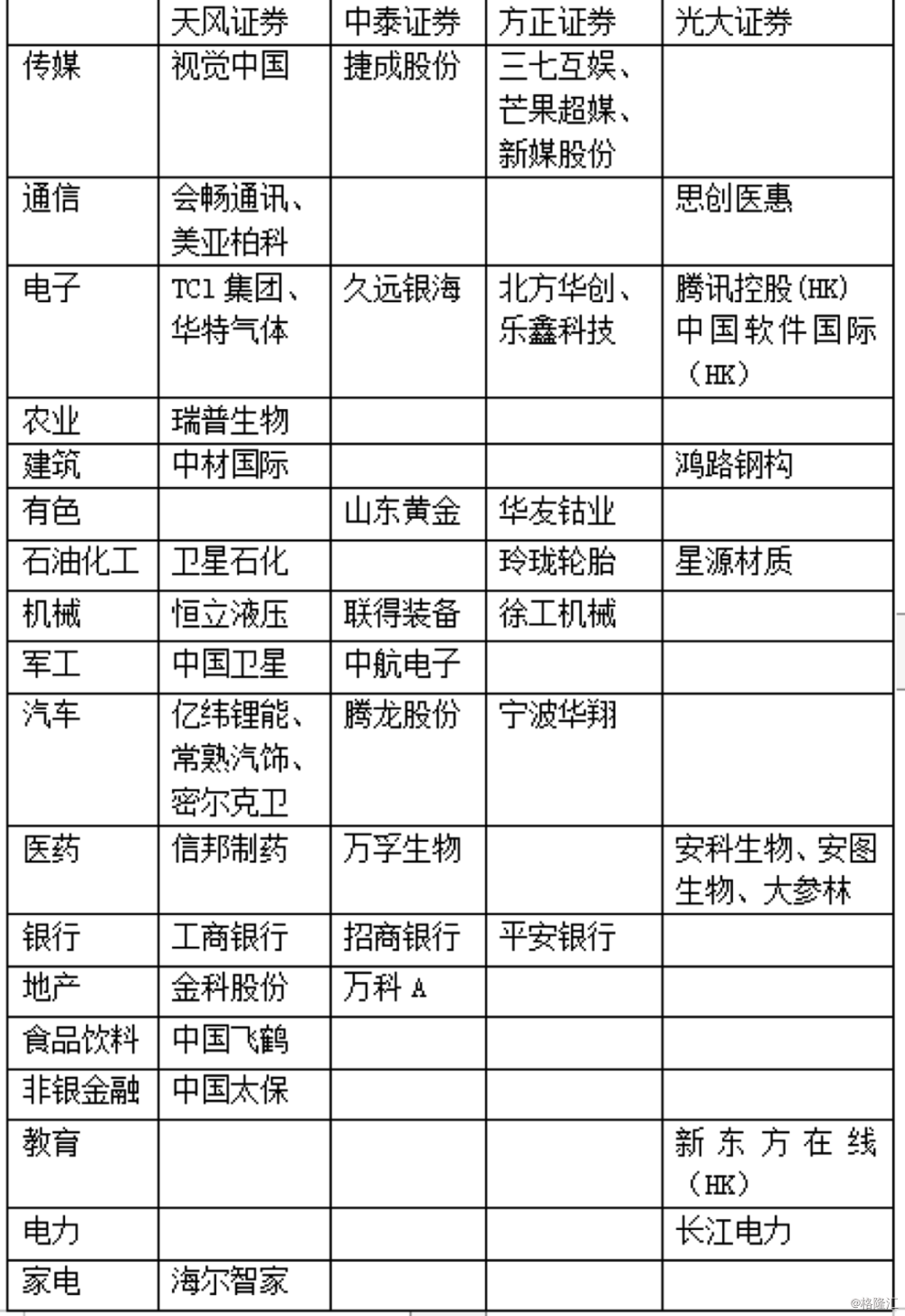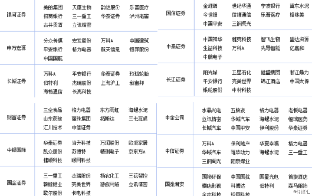 首先回顾一下各大券商2020年金股投资策略。
