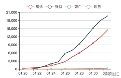 截止2月1日0—24时,新增确诊病例2590例,新增死亡病例45例,新增治愈出院病例85例,新增疑似病例4562例。累计报告确诊病例14380例,现有重症病例2110例,累计死亡病例304例,累计治愈出院病例328例,共有疑似病例19544例。新冠肺炎疫情遍布全国,确诊和疑似病例人数仍在攀升。相比2003年非典sars病毒,新冠肺炎虽然病死率低,但传染性更强(远超sars的全球8096的感染病例)。