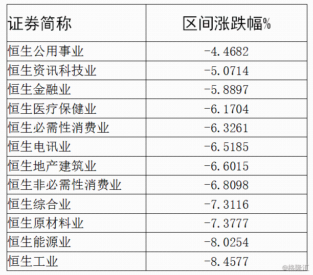另外,春节后,港股29日-31日走势和行业表现对节后A股有一定参考意义。连续三个交易日,恒生指数跌幅5.857%。 港股各行业均跌幅较大,其中金医疗保健、金融、资讯科技及公共事业跌幅较小。