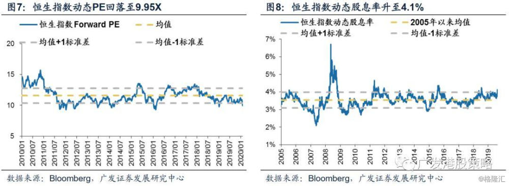 但对于跨境资金流动而言,全球“资产荒”对于低估值和高股息资产配置需求(尤其是境内险资、理财资金等)、“弱美元、稳人民币”带来的海外资金回流趋势并没有改变。突发的疫情增加了港股的估值吸引力(Forward PE为9.95X;动态股息率4.12%),2020年的价值回归年出现了一次由外生冲击导致的“价值坑”。