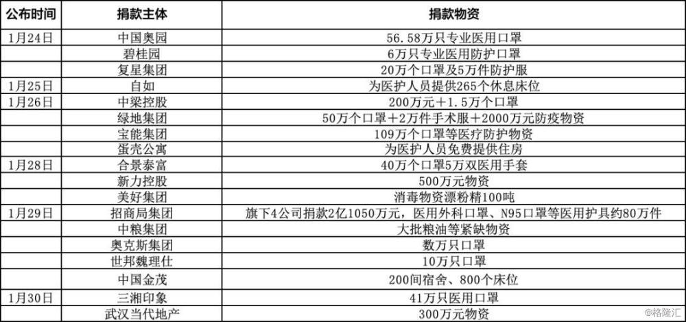 据不完全统计,截至2月1日,已有110多家房企伸出援助之手,累计捐款超15亿元,同时,不少房企还捐赠了疫区紧缺的物资,如医用口罩、隔离服、手套等医疗物资。