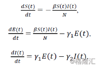 2)第二个微分方程的意思是单位时间内潜伏期人群(E)的变化等于新增加的感染者减去由潜伏期过渡到传染期的数量。表达成离散的形式如下: