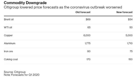 花旗集团(Citigroup Inc.)下调了从原油、铜和铁矿石等大宗商品的价格预期,因为该行认为,疫情的影响似乎比最初预想的要严重得多。