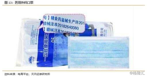 (2)医用外科口罩:符合 YY0469-2011技术标准,产品适用于临床医务人员在有创操作过程中所佩戴的,为接受处理的患者及实施有创操作的医务人员提供防护,阻止血液、体液和飞溅物传播。医药外科口罩具有良好的防水性能以及颗粒过滤效率,过滤效果通常能达到70%,及通常市面上看到的“外绿内白”的医用外科口罩。