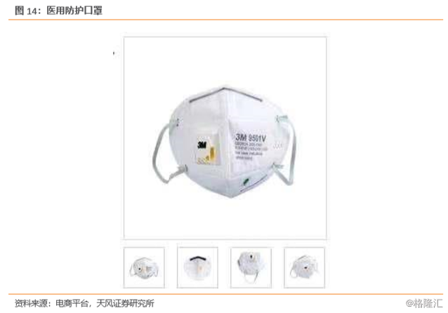 (3)医用防护口罩:符合GB19038-2010技术标准,产品适用于医疗工作环境下,过滤空气中的颗粒物,阻隔飞沫、血液、体液、分泌物等。医用防护口罩具有良好的颗粒过滤效率,能有效过滤病毒,过滤效果达到95%及以上。例如防护效果较好N95口罩与kN95口罩,主要是3M的9132、1860与霍尼韦尔H950v等(9501和9502,就是头戴式与耳带式的区别)。