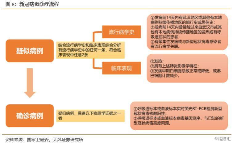 检测试剂盒的获批意味着原来由疾控中心统一调配的试剂盒可以由符合检测要求的医疗机构自行采购使用,加快了检测效率。1月27日,国家卫健委疾病预防控制局发布《新型冠状病毒感染的肺炎诊疗方案(试行第四版)》,采集样本要求包括上呼吸道标本(包括咽拭子、鼻拭子、鼻咽抽取物)、下呼吸道标本(包括深咳痰液、呼吸道抽取物、支气管灌洗液、肺泡灌洗液、肺组织活检标本)、血液标本、血清标本。确诊病例标准需要有核酸检测结果,包括实时荧光 RT-PCR 检测和基因测序。