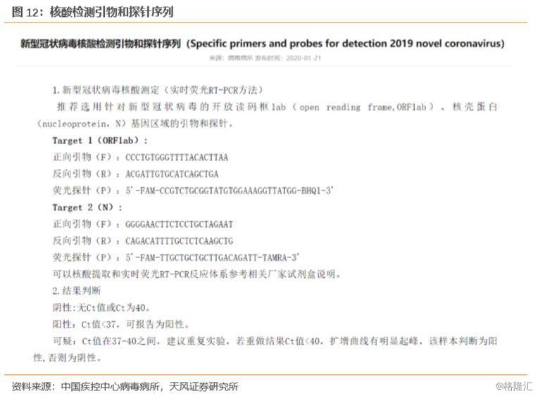 检测方法汇总:检测传染病的策略通常有两种,检测病原体本身,或检测人体为了抵抗病原体而产生的抗体。检测病原体既可以检测抗原(一般是病原体表面蛋白,有些用内部核蛋白),也可以检测核酸。核酸检测准确性更高,但是缺点是耗时较长,检测场所要求高,目前蛋白检测已经在研发当中,有公司已有相应的产品出现,检测时间进一步缩短,例如上海芯超生物等。