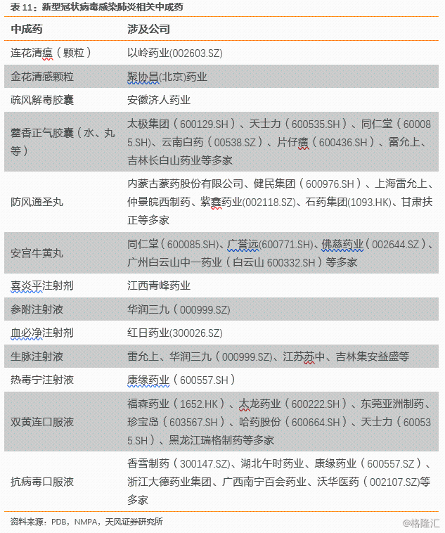 潜在新药:面对紧急公共卫生事件,从头开发新药以及疫苗研发可能需要较长时间周期,远水解不了近渴,我们认为当下老药新用可能更加具有现实可行性。近期已有多家科研机构发现一批可能对新型冠状病毒有效的老药,但仍需观察。