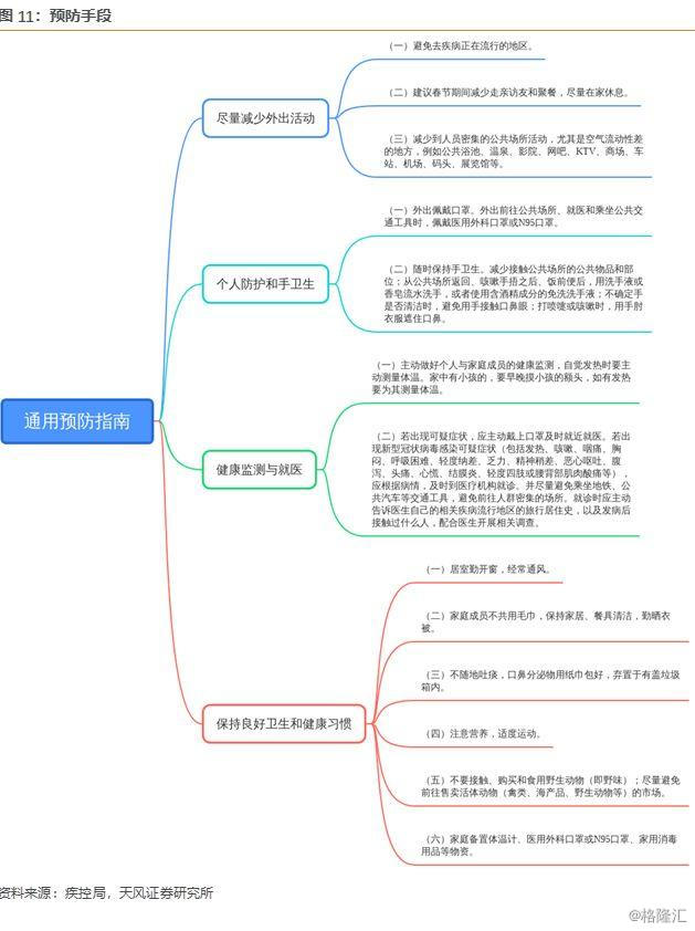 预防:疾病流行期间公众个人应注意四点:尽量减少外出活动、个人防护和手卫生、健康监测与就医、保持良好的卫生与健康习惯。
