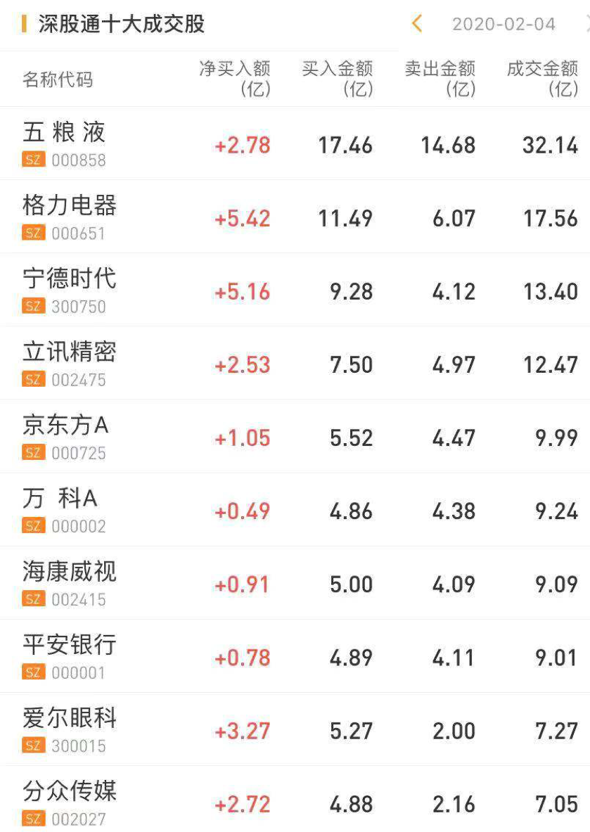 深股通净买入宁德时代5.16亿元,净买入五粮液2.78亿元,净买入格力电器5.42亿元。