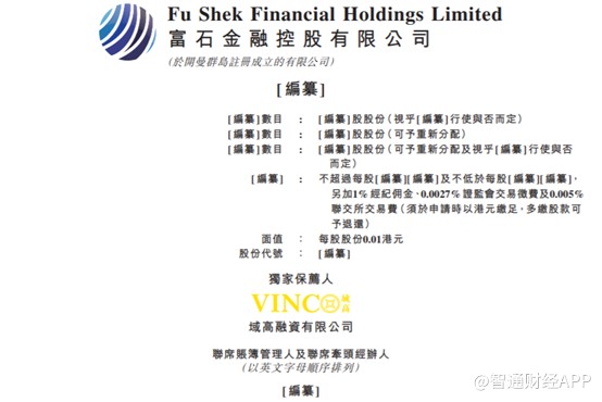 智通财经观察到,递表将近半年后,富石金融控股有限公司(以下简称富石金融,02263)于近日终于通过港交所聆讯,并于1月31日至2月7日招股。公司拟发行2.5亿股,其中香港公开发售2500万股,国际发售2.25亿股。每股发售价为0.5港元-0.6港元,每手10000股,预期2020年2月19日上市交易。