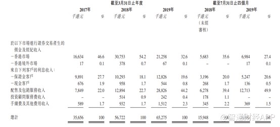 以收入规模看,富石金融也只能算得上小巧。以截至2017年3月31日年度至2019年3月31日年度,公司收入分别为3570万港元、5670万港元和6530万港元,同比分别增长59.1%和15.1%,截至2019年7月31日四个月,收入2550万港元,同比增长59.7%。