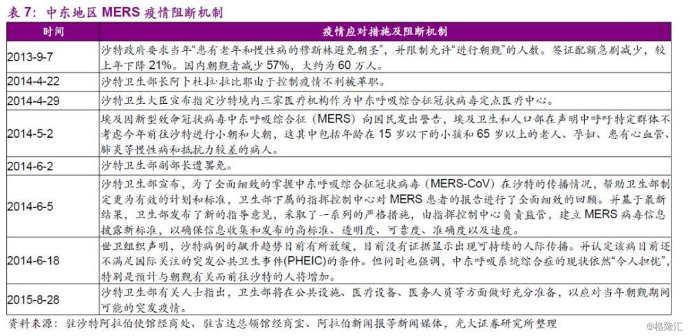 由于中东地区MERS疫情主要集中在沙特地区(超过90%),中东其他国家或地区受到疫情影响程度较轻,因而采取应对MERS疫情的措施较少,多为劝导本国居民避免前往麦加进行朝觐活动。