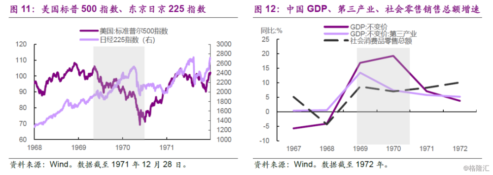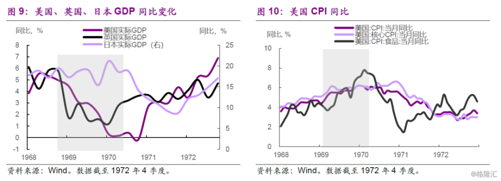 美国方面,1970-71年受经济衰退影响,美联储多次降息,逐步将联邦基础利率从9%的高水平降低到3%左右以应对经济下行的压力。