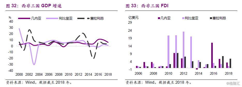 从实际数据上来看,西非三国在遭受埃博拉疫情之后GDP增速都出现了一定程度的下降,但相对较为短暂。其中塞拉利昂2015年GDP大幅负增长,2016年增速转正;外商直接投资也有所下滑,2014年几内亚甚至遭遇了外资流出,但2016年后开始反弹。由世界银行出资用于连接利比里亚和几内亚的公路项目被迫中止,承包项目的中国企业撤出了工人。