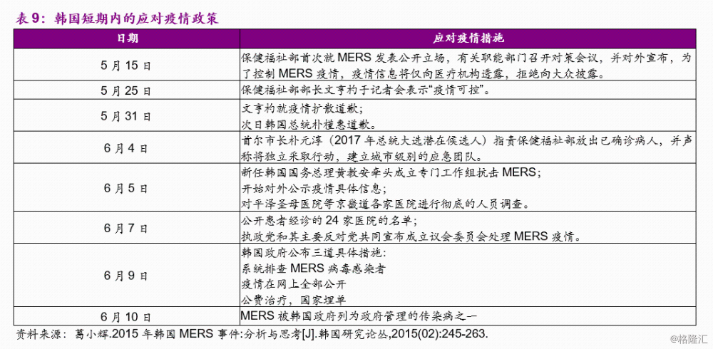 与此同时,由于韩国政府前期隐瞒病情,造成疫情扩散,后公开道歉,并采取透明、隔离、诊治等一系列政策,如表9所示。