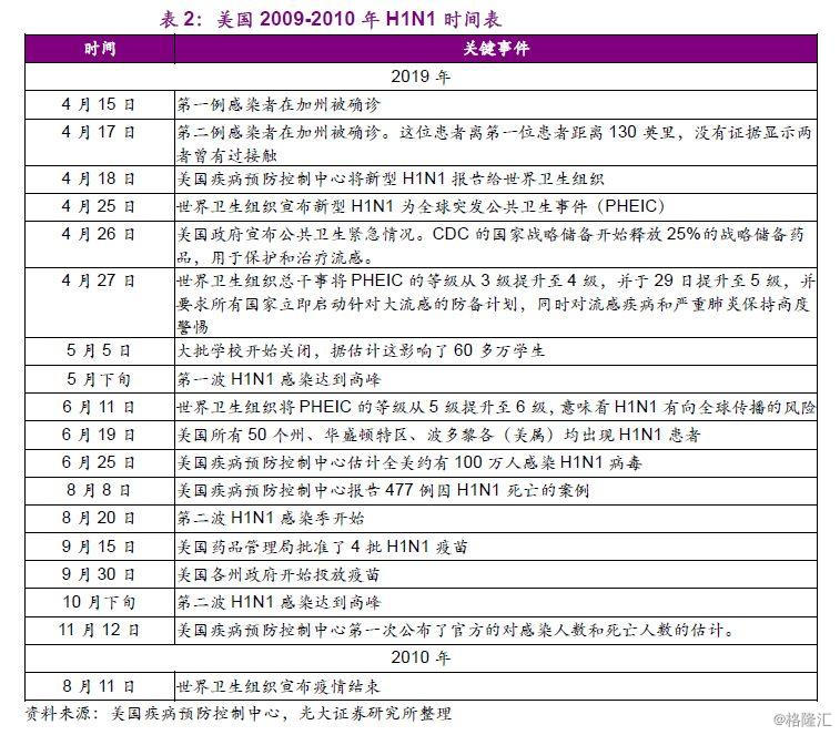 自2009年4月发现新型H1N1病毒以来,美国疾病预防控制中心(CDC)很快将其报告给世界卫生组织(WHO),后者在评估后宣布此为全球突发公共卫生事件(PHEIC)。美国政府也很快宣布公共卫生紧急情况,开始释放25%的战略储备药品,用于保护和治疗流感(表2)。4-10月,美国前后经历了两波感染高发季,部分学校被迫停课。10月,美国政府开始投放疫苗,疫情逐渐好转。到2010年8月,世界卫生组织宣布疫情结束。