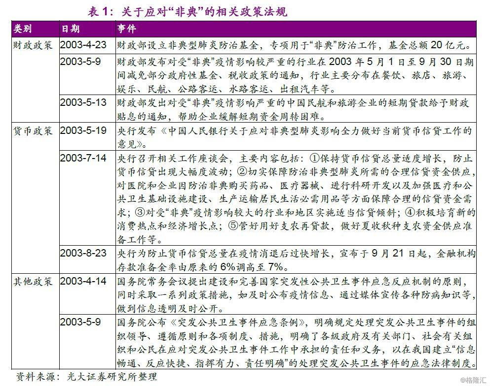 医药、科技、健康等产业政策受到扶持。“非典”期间,部分行业受到疫情冲击较大,如旅游和一般消费等,而如医药、消毒产品、自行车、家电等需求快速增长。因此在“非典”之后,国家采取多项措施积极扶持生物医药、科技教育、环境治理等基础产业的发展,持续推进可持续发展战略。