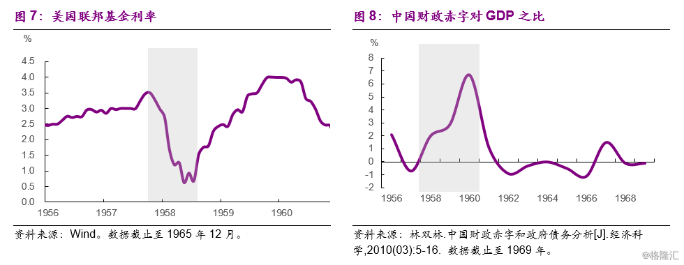 美国方面,适逢衰退,美联储于1957年8月开始到1958年8月持续降息,将联邦基金利率从3.5%降低到0.5%附近,应对美国经济的下行压力。中国方面,流感蔓延正好赶上“大跃进”时期,财政赤字大增。