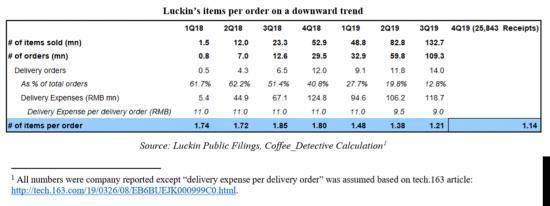 况且,有意思的是,报告指控的重点——瑞幸单店销售数据,回顾起来是从2018年Q1的108日均单量逐步涨上来的,要造假得一个一个季度造假,成本太过高昂,也太容易出事。按报告里的说法,瑞幸各种作假的话,它应该能够在第一次就“神不知鬼不觉”把基数设置得比108高很多,也省得这么麻烦了,且2019年Q2瑞幸因为财报不好大跌了一次,这不像是造假所为。