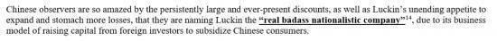 而报告另一方面又说瑞幸采取与星巴克全不相同的模式,据此暗示瑞幸也会过得不好。