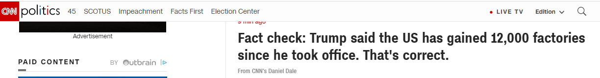 原标题:快讯!特朗普:美国在其执政期间增加了1.2万家新工厂