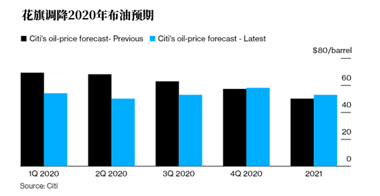 近日,花旗银行的能源分析师将他们对2020年布油价格的预期从60多美元的高位下调至50多美元,其中第一季度的平均价格为54美元,第二季度的平均价格为50美元。他们预计布油价格最低可能跌至47美元。该行分析师在报告中指出: