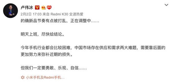 小米副总裁卢伟冰也在微博承认此次疫情对消费者的购买力有较大影响,另外新品节奏有点被打乱,正在调整。他坦言“今年手机行业都会比较困难,中国市场存在供应和需求两大难题,需要靠后面的更加努力来弥补近期的损失。”