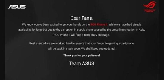 工厂的产能,毫无疑问会因为疫情受到影响,供应链是一个庞大而完整的链条,牵一发而动全身,物流、交通、人力各个环节都可能引发蝴蝶效应。即便组装厂保证产能,但任何一个上游的关键元器件短缺,都会对整机的完整性造成影响。而据GSMArena的报道,华硕印度分公司甚至已经向消费者发送了致歉信,承认由于亚洲普遍形势造成供应链中断。