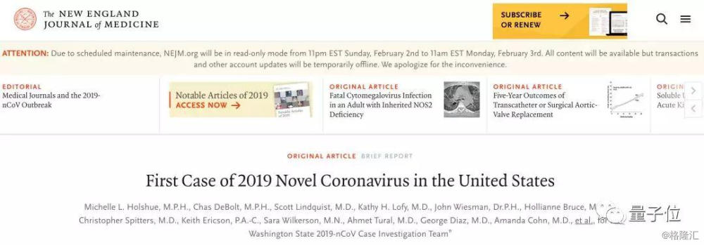 2020年1月31日权威医学期刊《新英格兰医学杂志》(NEJM)在线发表了一篇论文,介绍美国首例确诊新型冠状病毒病例的诊疗过程以及临床表现。