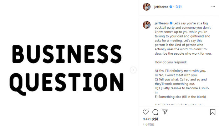 而贝佐斯选择在Instagram回应Navarro的说法。