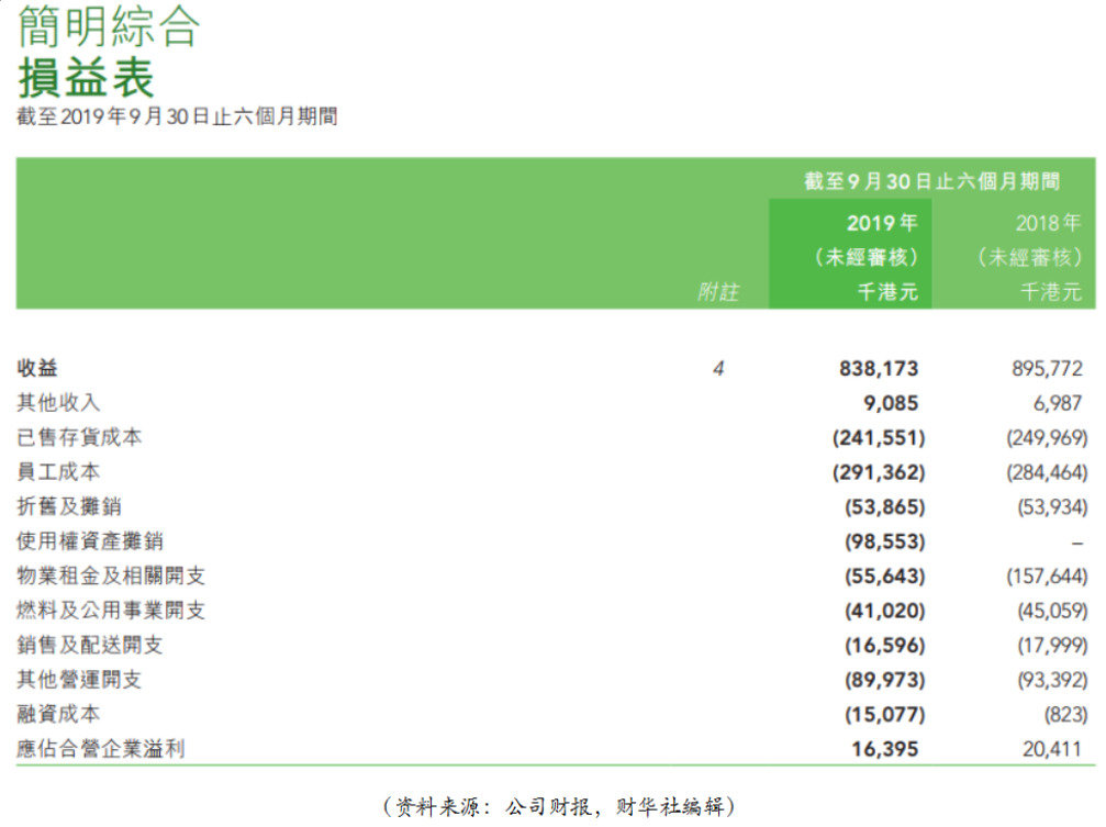偏偏翠华控股近年经营业绩亦承受压力,2015财年至2018财年收益分别为18.68亿港元、18.45亿港元、18.40亿港元及17.87亿港元,连续三年收益下滑。2019财年中期报显示,收益同比下降6.4%至8.38亿港元;公司拥有人应占溢利由上年同期的盈利1441.0万港元转为亏损4450.2万港元。