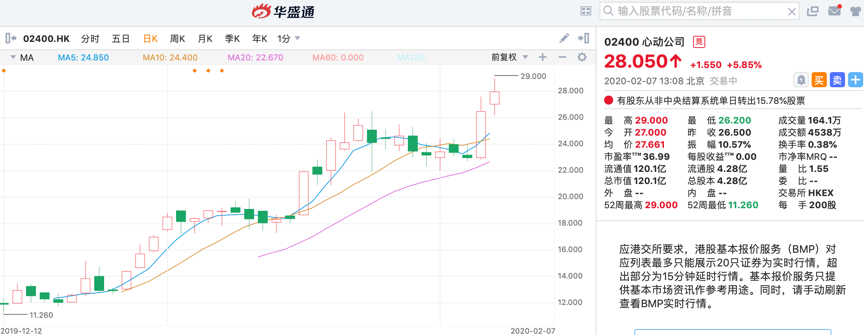 本次谈及的投资标的心动公司(02400),即属港市游戏板块,同时也是上市不久的次新股。尽管大市行情表现不佳,但心动公司的股价却逆市走强,截至发稿,公司股价又涨近6%,现报28.05港元每股,较11.1港元每股的招股价已累计上涨超150%,可以说是在淡市中飞翔的大牛股了。