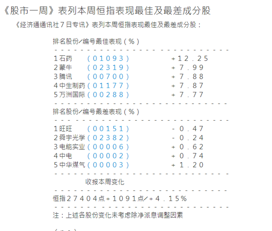 总结全周,港股在26145至27608点之间波动,上下波幅达1462点,全周累升1091点或4.15%;国指全周累升464点或4.54%。本周总成交额6374.5亿元,日均成交1274.9亿元。