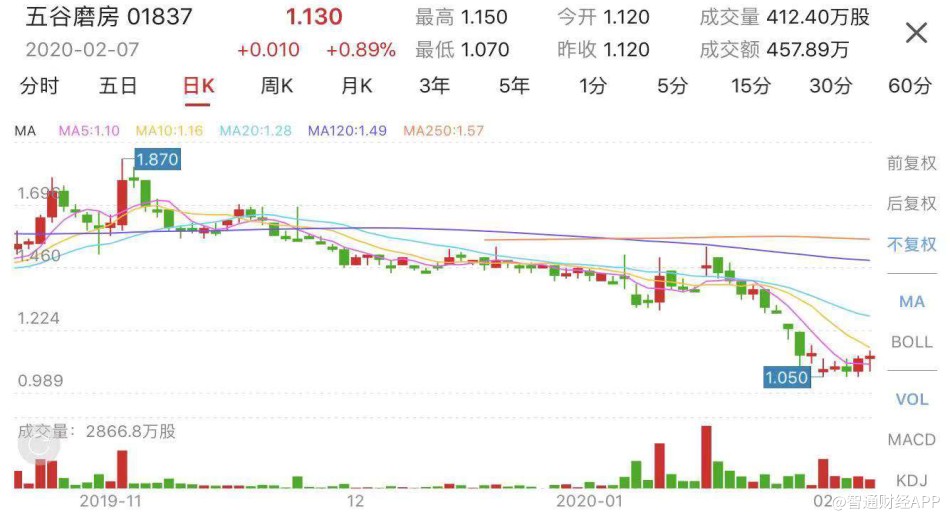 尴尬的是,同样具有“宅家”属性的中国第二大天然健康食品公司——五谷磨房(01837)的股价却未能实现上涨,自1月23日以来公司股价跌幅达到近20%。