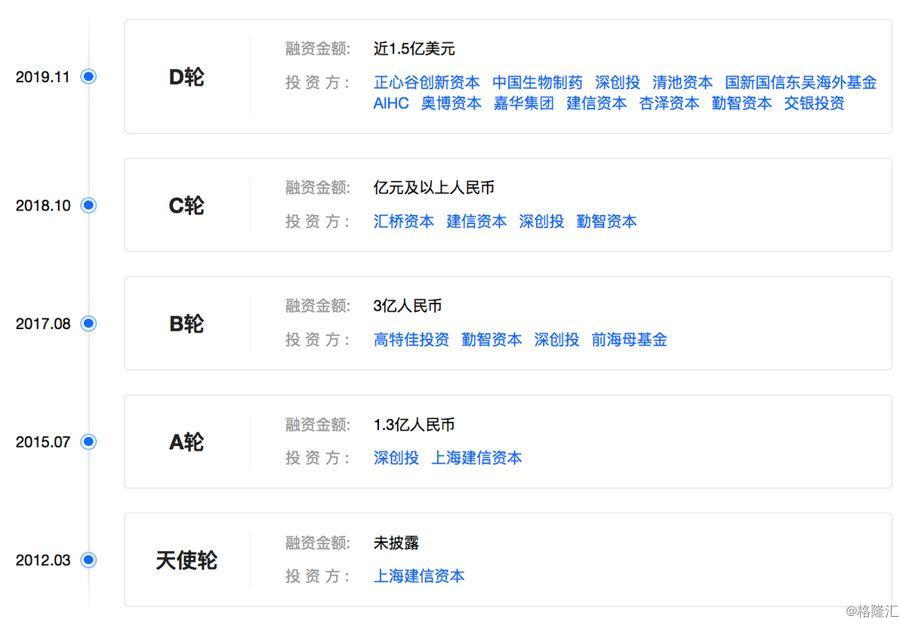 于是在那之后,康方生物迎来了后续的各轮融资。从2015年A轮融资后估值仅3.3亿元人民币,到2019年11月的D轮融资,估值已升至8.36亿美元,涨幅达17.7倍。