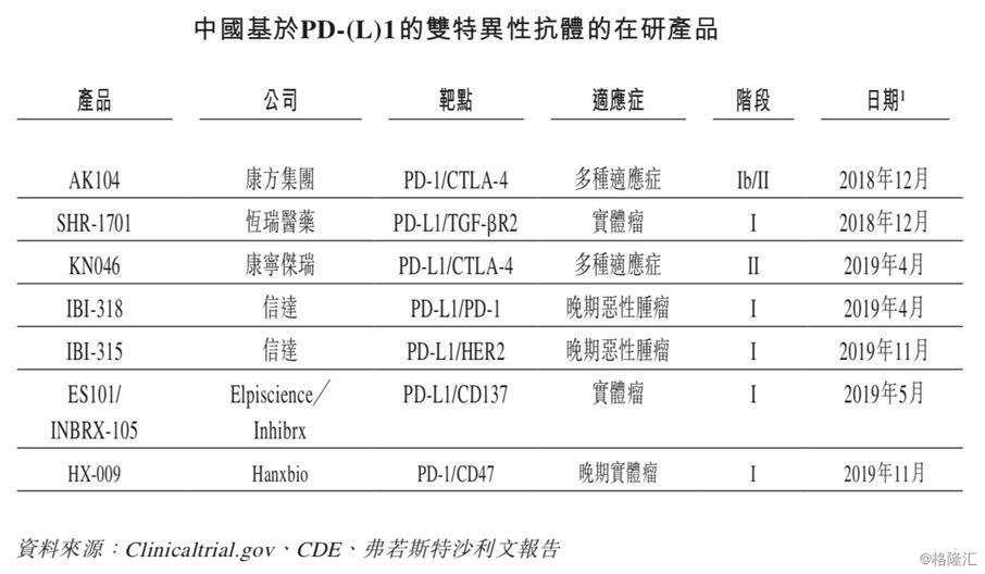 再看双抗。所谓的双抗,指的是双特异性抗体,即含有2种特异性抗原结合位点的人工抗体。由于PD-1单抗产品总缓解率仍不高,各大药企又开始逐渐发展双靶点联合疗法,以及研究双靶点双抗。