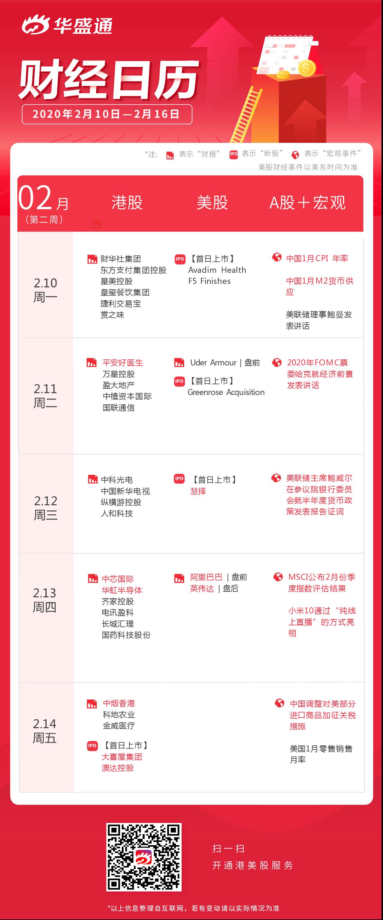 以上即为本周港美股、A股及宏观资讯一览,祝新的一周投资顺利~点击“日历”专区,了解本周更多财经大事↓