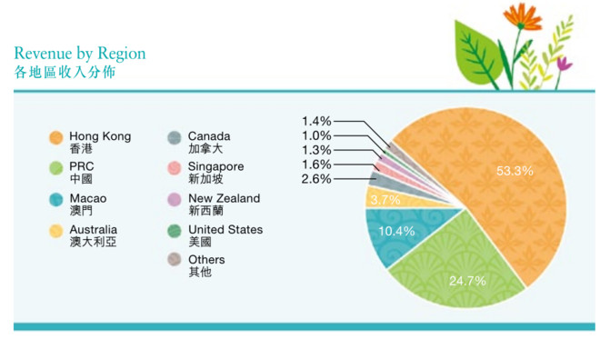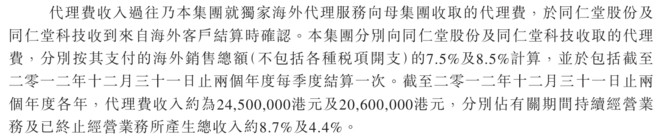 2012年,同仁堂国药在香港的销售额是1.839亿港元,占其内地以外市场的收入比54.5%,占其全部收入比为40.62%。