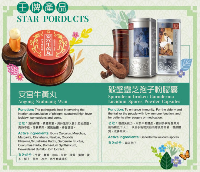 其主要销售的产品为安宫牛黄丸和灵芝破壁孢子粉。