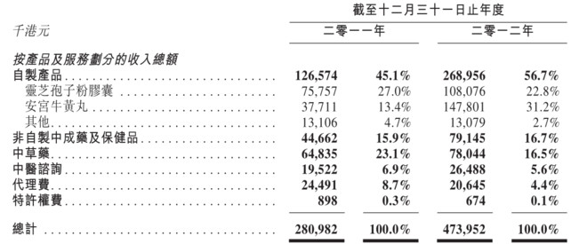 招股书中我们知道2012年灵芝孢子粉胶囊的总销售额是108076千港元,则此处复现一个重要信息: