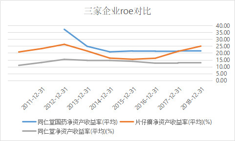 国药是在海外经营中药业务,我认为其所面临的竞争是比较小的。我们可以从净利润率来看这件事情(片仔癀的收入构成比较复杂,摊薄了整体费用率和毛利率),当然销售收入构成也影响了这个指标,所以特殊渠道对国药的贡献还是很难说清楚,或许roe可以证明一切: