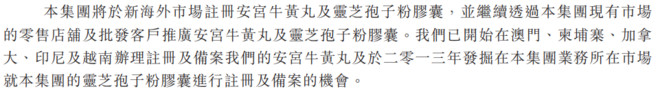 在上市时,显然安宫牛黄丸还没有在香港以外的其他地区做好注册备案,所以也不会有官方渠道的销售额。